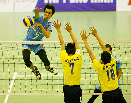 Chủ công Từ Thanh Thuận (trái) với cú đập sấm sét.