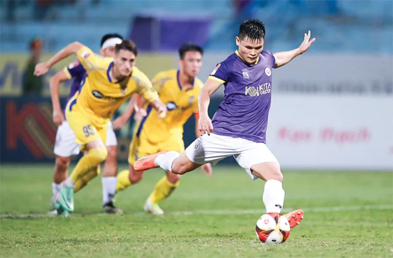 Tuấn Hải (phải) đang thi đấu với phong độ rất cao cùng Hà Nội. Ảnh: VPF