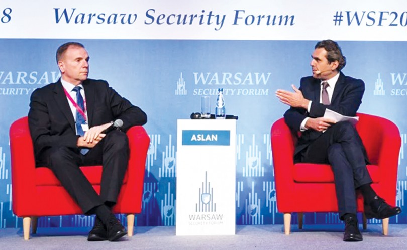 Cựu tướng Hodges (trái) tại Diễn đàn An ninh Warsaw. Ảnh: EPA