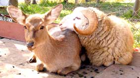 Để đánh dấu Lễ tình nhân năm nay, một vườn thú tại thành phố Côn Minh, tỉnh Vân Nam (Trung Quốc) quyết định sẽ tổ chức “lễ cưới” cho một chú cừu và một nàng nai (ảnh).