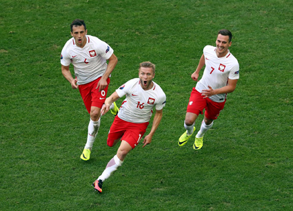 Blaszczykowski (giữa) mừng bàn thắng duy nhất của trận đấu. Ảnh: UEFA |