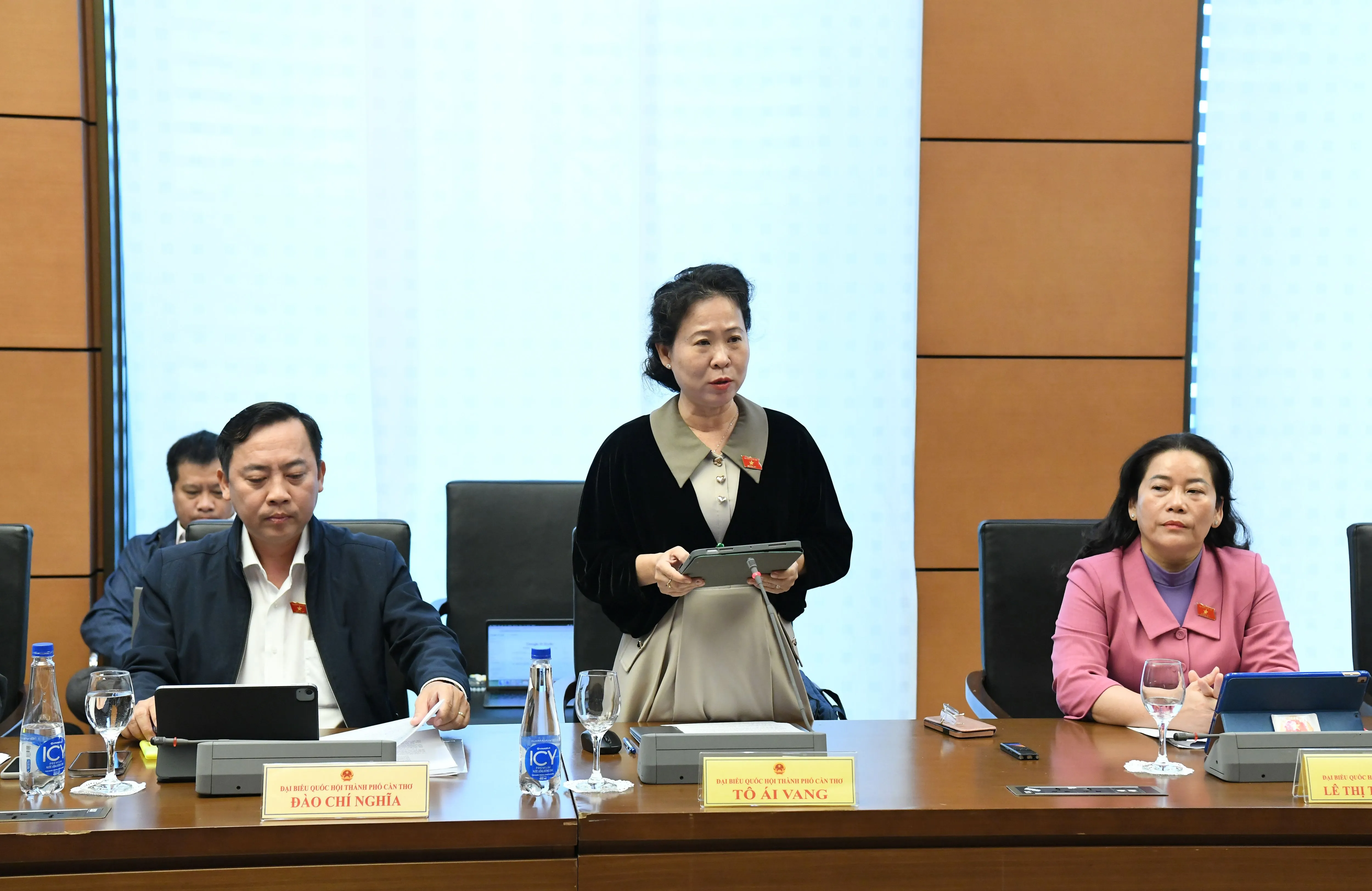 Tham gia phát biểu ý kiến, các vị ĐBQH thuộc Đoàn ĐBQH TP Cần Thơ, gồm: Bà Lê Thị Thanh Lam, Phó Trưởng đoàn chuyên trách và bà Tô Ái Vang, Phó Trưởng đoàn chuyên trách Đoàn ĐBQH TP Cần Thơ tham gia một số ý kiến như sau: