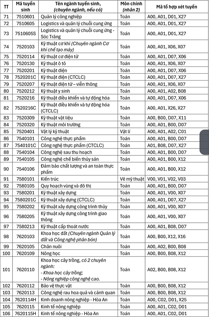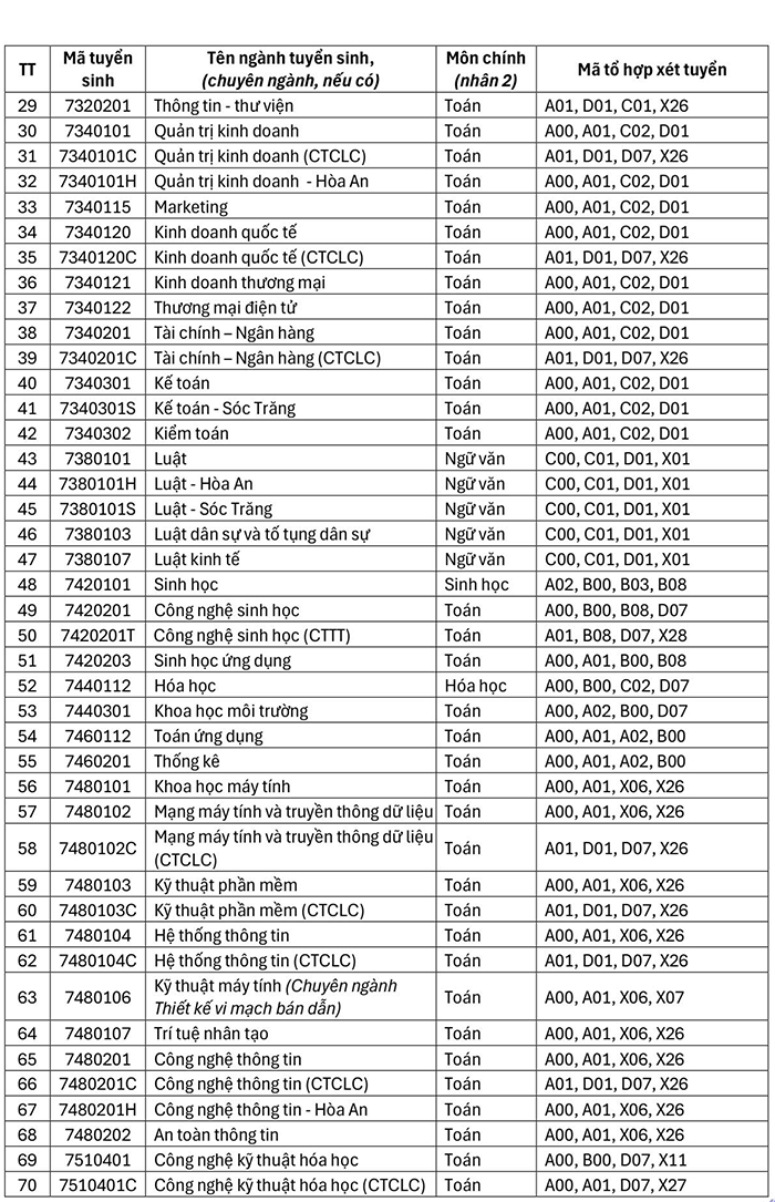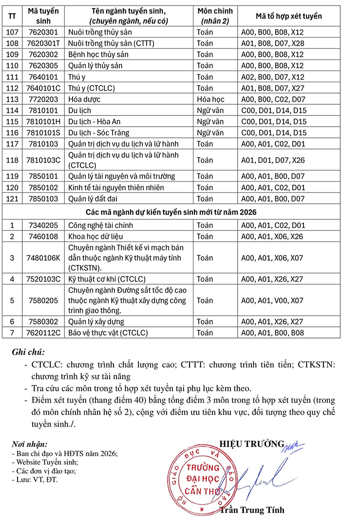 Đại học Cần Thơ công bố danh mục tổ hợp xét tuyển đại học chính quy năm 2026