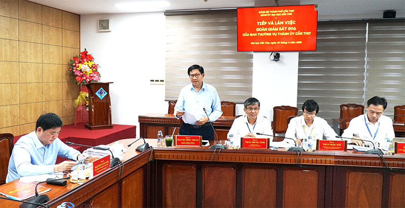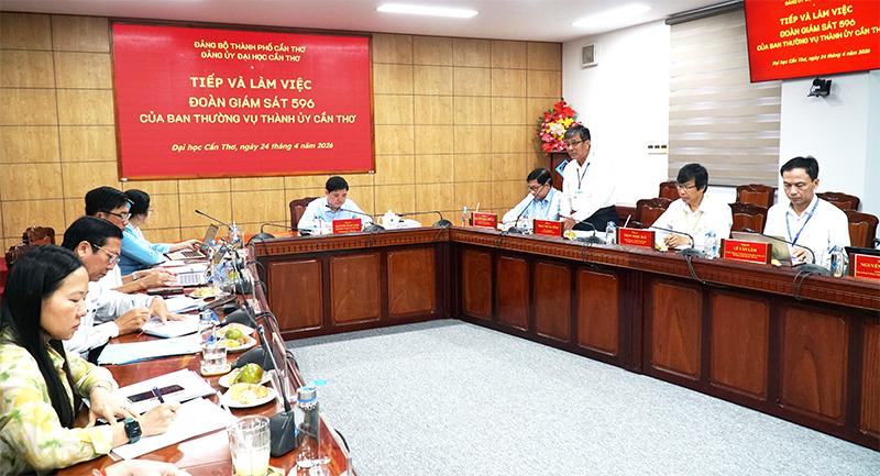 Sáng 24-4, ông Nguyễn Tuấn Anh, Phó Bí thư Thành ủy, Trưởng đoàn Giám sát 596 của Ban Thường vụ Thành ủy Cần Thơ, cùng các thành viên Đoàn giám sát đến làm việc với Đảng ủy Đại học Cần Thơ để giám sát kết quả thực hiện nhiệm vụ trọng tâm năm 2026.
