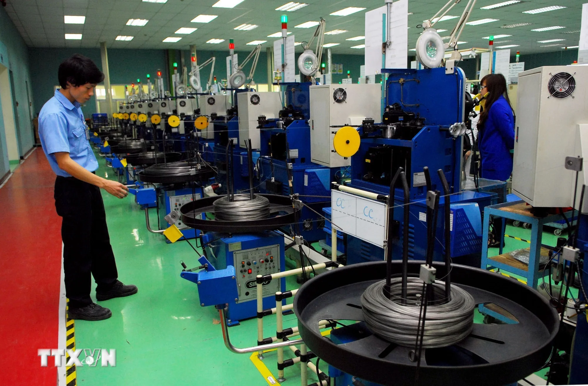 Một dây chuyền sản xuất các loại lò so (cuốn, dập), linh kiện cơ khí…chất lượng cao, cung cấp cho các nhà máy. (Ảnh: Danh Lam/TTXVN)