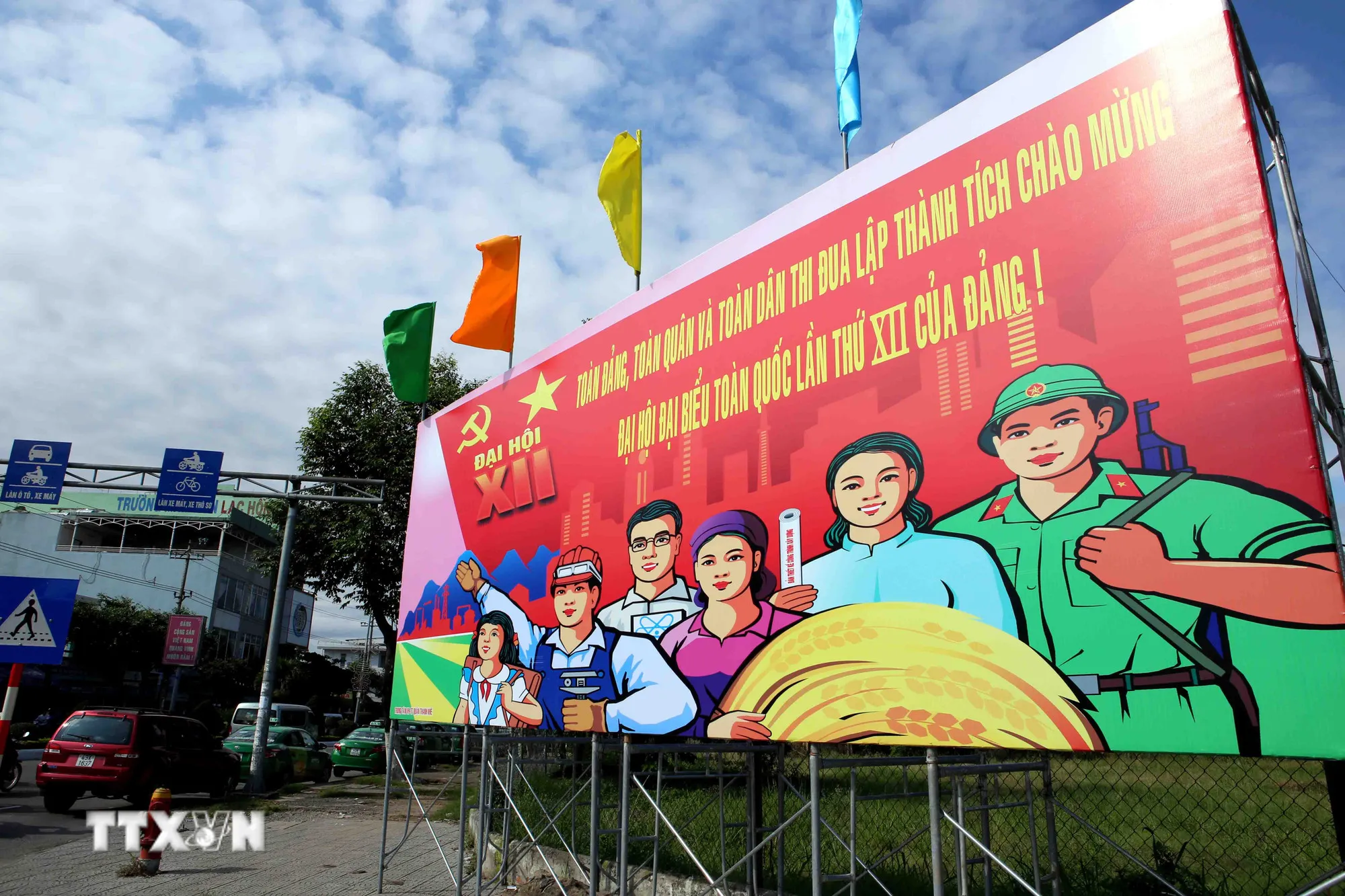 Panô chào mừng Đại hội Đảng toàn quốc lần thứ XII được trang trí tại đường Nguyễn Văn Linh (Đà Nẵng). (Ảnh: Trần Lê Lâm/TTXVN)
