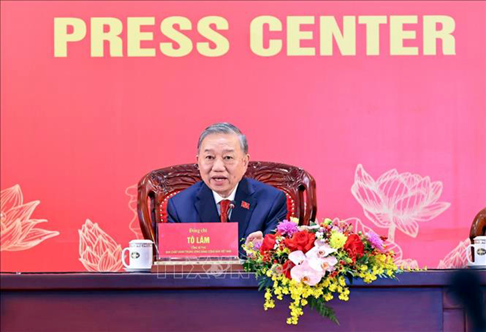 Tổng Bí thư Tô Lâm chủ trì họp báo quốc tế công bố kết quả Đại hội XIV của Đảng. Ảnh: TTXVN