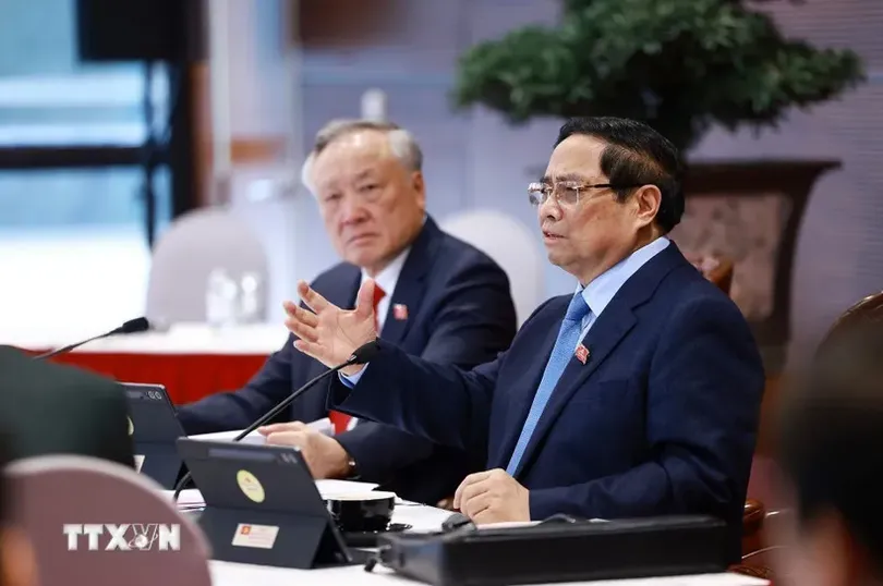 Ủy viên Bộ Chính trị, Thủ tướng Chính phủ Phạm Minh Chính phát biểu trong buổi thảo luận tại Đoàn. (Ảnh: TTXVN)