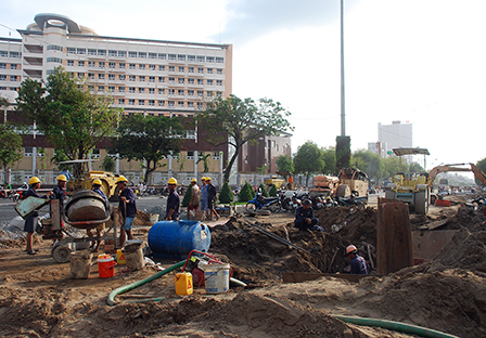Công trình đang khẩn trương thi công trên Đại lộ Hòa Bình. Ảnh: X. ĐÀO