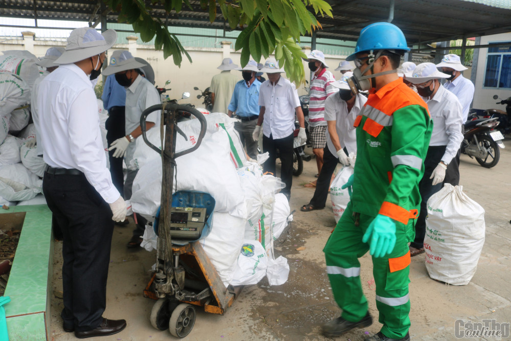 Thực hiện thu gom, xử lý bao bì thuốc bảo vệ thực vật để bảo vệ môi trường tại huyện Phong Điền, TP Cần Thơ.
