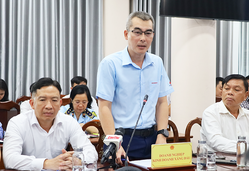 Ông Nguyễn Đăng Chinh, Giám đốc Petrolimex Cần Thơ, thông tin về tình hình cung ứng xăng dầu của đơn vị tại cuộc họp.