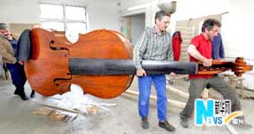 12 nghệ nhân của làng chế tác đàn vĩ cầm Markneukirchen nổi tiếng ở miền Đông nước Đức đang sắp hoàn thành cây đàn violon được cho có kích cỡ lớn nhất thế giới (ảnh). Theo thiết kế, nhạc cụ khổng lồ có thể kéo được này sẽ cao 4,28 m, ngang 1,45 m và nặng hơn 100 kg.
