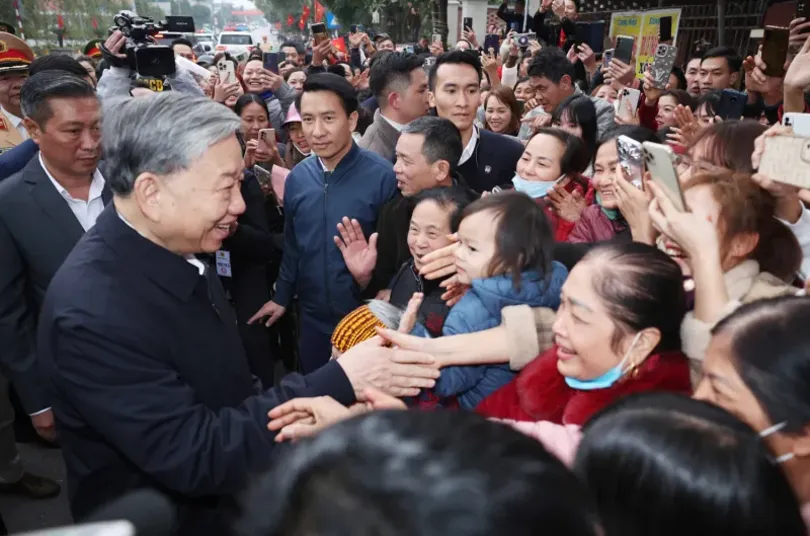 Tổng Bí thư Tô Lâm với nhân dân Vị Xuyên, Hà Giang (nay là tỉnh Tuyên Quang), ngày 5/2/2025. Ảnh: TTXVN