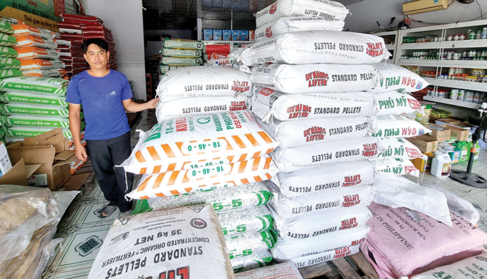 Phân bón được bày bán tại một cửa hàng ở huyện Phong Điền, TP Cần Thơ.