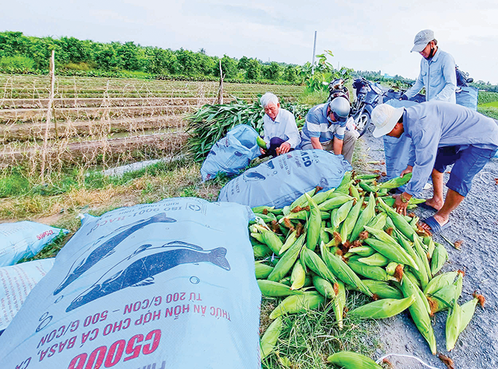 Thu hoạch bắp tại huyện Tam Bình, tỉnh Vĩnh Long.