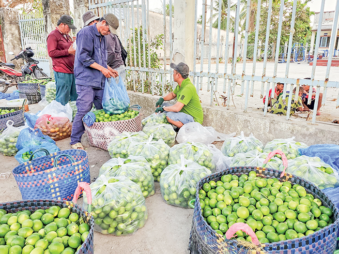 Thương lái thu mua chanh không hạt tại huyện Tam Bình, tỉnh Vĩnh Long.