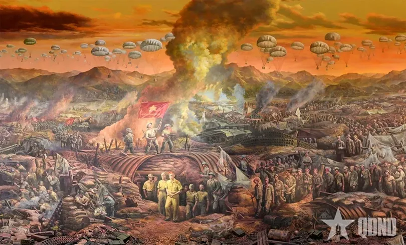 Một đoạn bức tranh panorama “Chiến dịch Điện Biên Phủ”. Ảnh: TUẤN HUY
