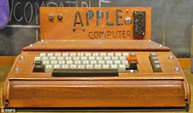 Chiếc máy tính Apple-1 (ảnh), đời máy tính đầu tiên của hãng Apple (Mỹ), sắp được bán đấu giá tại Anh với giá trị có thể lên đến 150.000 bảng (4,7 tỉ đồng). Ra đời năm 1976 với giá bán khi đó chỉ 666,66 USD (khoảng 13 triệu đồng), máy tính Apple-1 được đấu giá lần này là một trong số 200 sản phẩm được sản xuất thủ công bởi Steve Wozniak, nhà đồng sáng lập công ty. Máy được trang bị bộ nhớ chỉ 8 kilobytes, không đủ khả năng để lưu được 1 bài hát và thua xa các máy tính hiện đại ngày nay của hãng đến khoảng