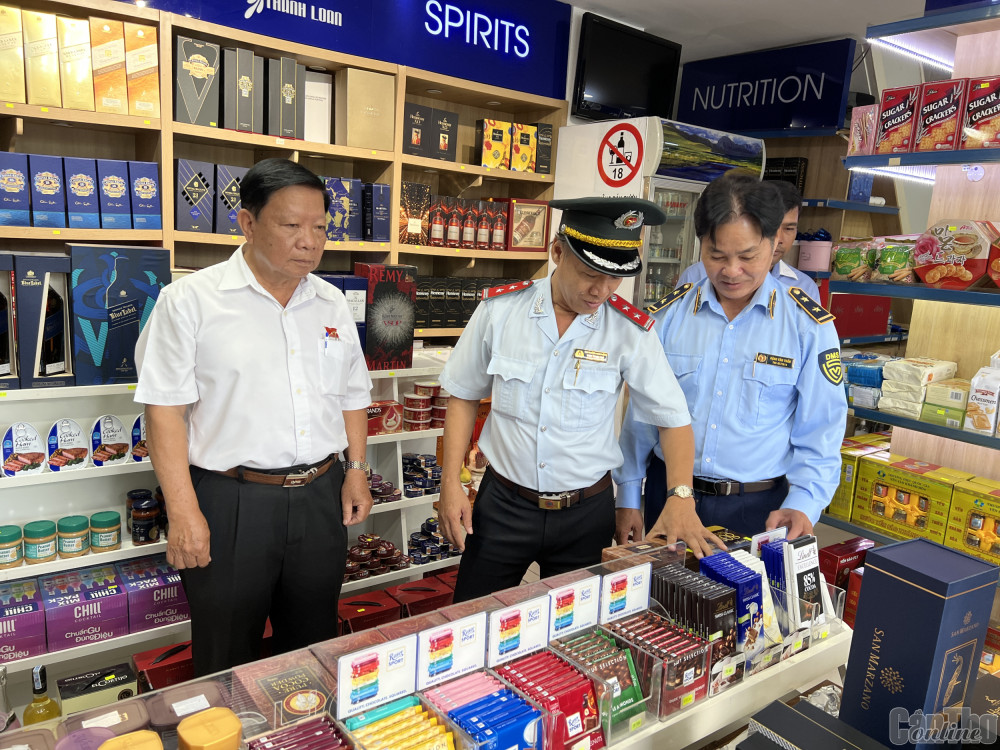 Các lực lượng chức năng BCĐ 389/TP kiểm tra cửa hàng kinh doanh thực phẩm công nghệ nhập khẩu trên địa bàn quận Ninh Kiều.