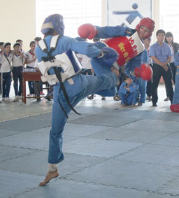 Vovinam là một trong những môn võ được thể thao Cần Thơ đầu tư trọng điểm. Trong ảnh: Các võ sĩ vovinam tranh tài tại Giải Vô địch Vovinam TP Cần Thơ 2015. |