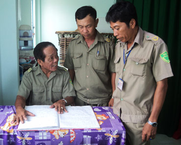 | Ông Phạm Ngẫu đang trao đổi tình hình an ninh trận tự địa bàn với các thành viên Ban BVDP phường An Thới. |