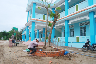 để bước vào năm học mới. Ngày 20-8 tới, trường sẽ đưa vào sử dụng hệ thống trường học mới với diện tích 7.300m2, với 20 phòng học, 6 phòng làm việc, 8 phòng chức năng, có sân chơi, sân tập thể dục thể thao, đảm bảo yêu cầu sinh hoạt, luyện tập hằng ngày cho học sinh. Thầy Võ Hữu Tâm, Hiệu trưởng Trường Tiểu học Nguyễn Việt Hồng, phấn khởi nói: Năm nay, trường tiếp nhận 470 học sinh các khối lớp. Với kinh phí xây dựng khoảng 30 tỉ đồng, trường có đầy đủ trang thiết bị, tiện nghi phục vụ dạy và học. Với cơ sở và đội ngũ cán bộ hiện tại, trường chuẩn bị được công nhận đạt chuẩn quốc gia. Đó là niềm vinh dự, tự hào và phấn khởi của tập thể giáo viên nhà trường; qua đó nhắc nhở thầy cô ra sức phấn đấu, tập trung nâng cao chất lượng giảng dạy". Cũng tâm trạng phấn khởi trên, cô Trần Thị Lộc Toàn, giáo viên giảng dạy lớp 4, cho biết: "Lúc trước, trường gặp nhiều khó khăn về cơ sở vật chất; trường lớp chật hẹp, sân chơi hạn chế, bất tiện nhất vào mùa mưa, mùa nước nổi, chưa đảm bảo trang thiết bị dạy học cũng như nhà vệ sinh phục vụ sinh hoạt. Nay trường được xây dựng mới với cơ sở khang trang, sạch đẹp, đầy đủ trang thiết bị, giáo viên rất an tâm và phấn khởi, tập trung tâm huyết giảng dạy".