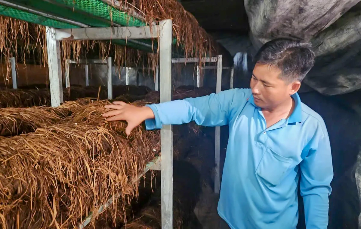 Trồng nấm rơm theo mô hình nông nghiệp tuần hoàn tại HTX Newgreen Farm, TP Cần Thơ.