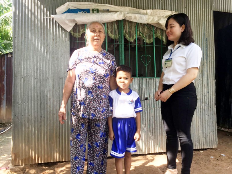 Chị Bùi Thị Bích Chi, Công chức Tư pháp – Hộ tịch UBND phường Trung Nhứt ghé thăm nhà cháu An.