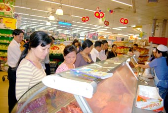 Vào những đợt mua sắm cao điểm, hàng bình ổn giá đã tạo “kim chỉ nam” điều tiết mặt bằng giá trên thị trường. Trong ảnh: quầy hàng bình ổn giá kinh doanh gia súc, gia cầm của C.T.C tại Siêu thị Co.opmart Cần Thơ. |