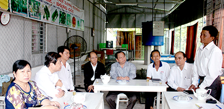 Lãnh đạo TP Cần Thơ đi kiểm tra tình hình sản xuất rau màu của nông dân tại quận Bình Thủy, TP Cần Thơ.