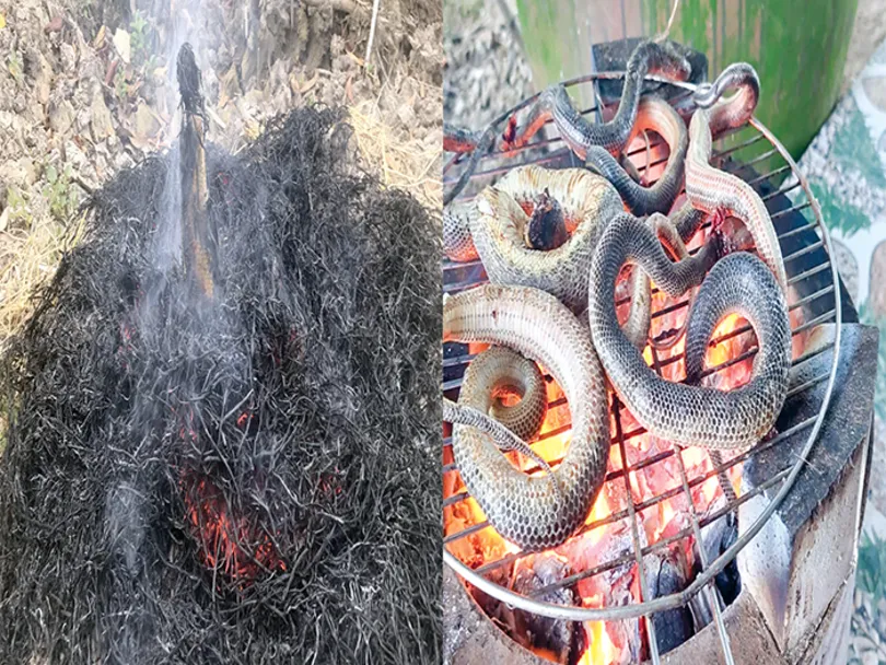 Rắn nướng lèo ăn với muối hột là cách ăn dân dã nhớ đời. Ảnh: DUY KHÔI
