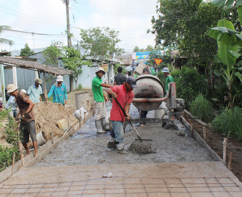 Xây dựng đường giao thông nông thôn ở vùng đồng bào Khmer, từ Chương trình 135 ở Sóc Trăng. Ảnh: Lý Then