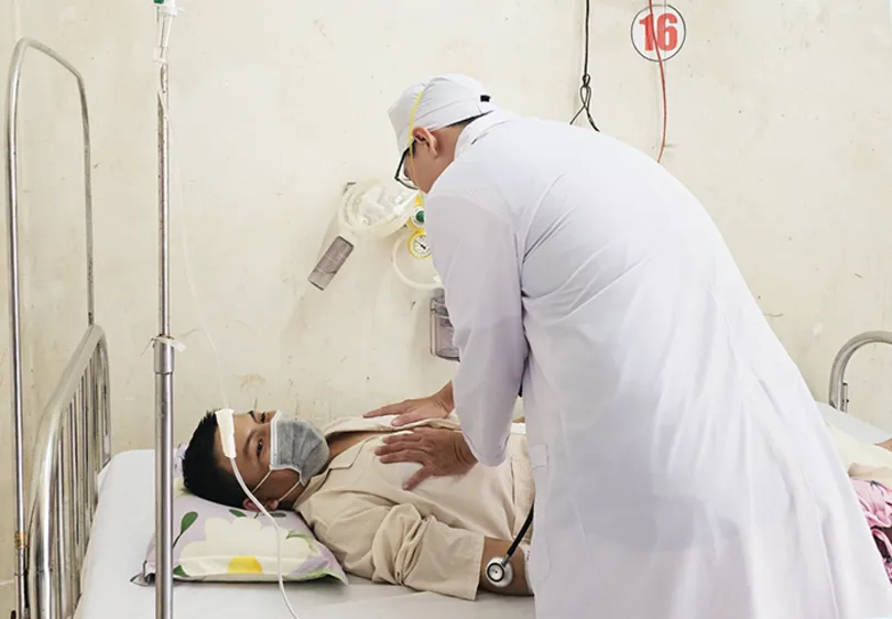 Bác sĩ của Bệnh viện Lao và Bệnh phổi TP Cần Thơ khám cho bệnh nhân. Ảnh: Đ0ÀN LÝ