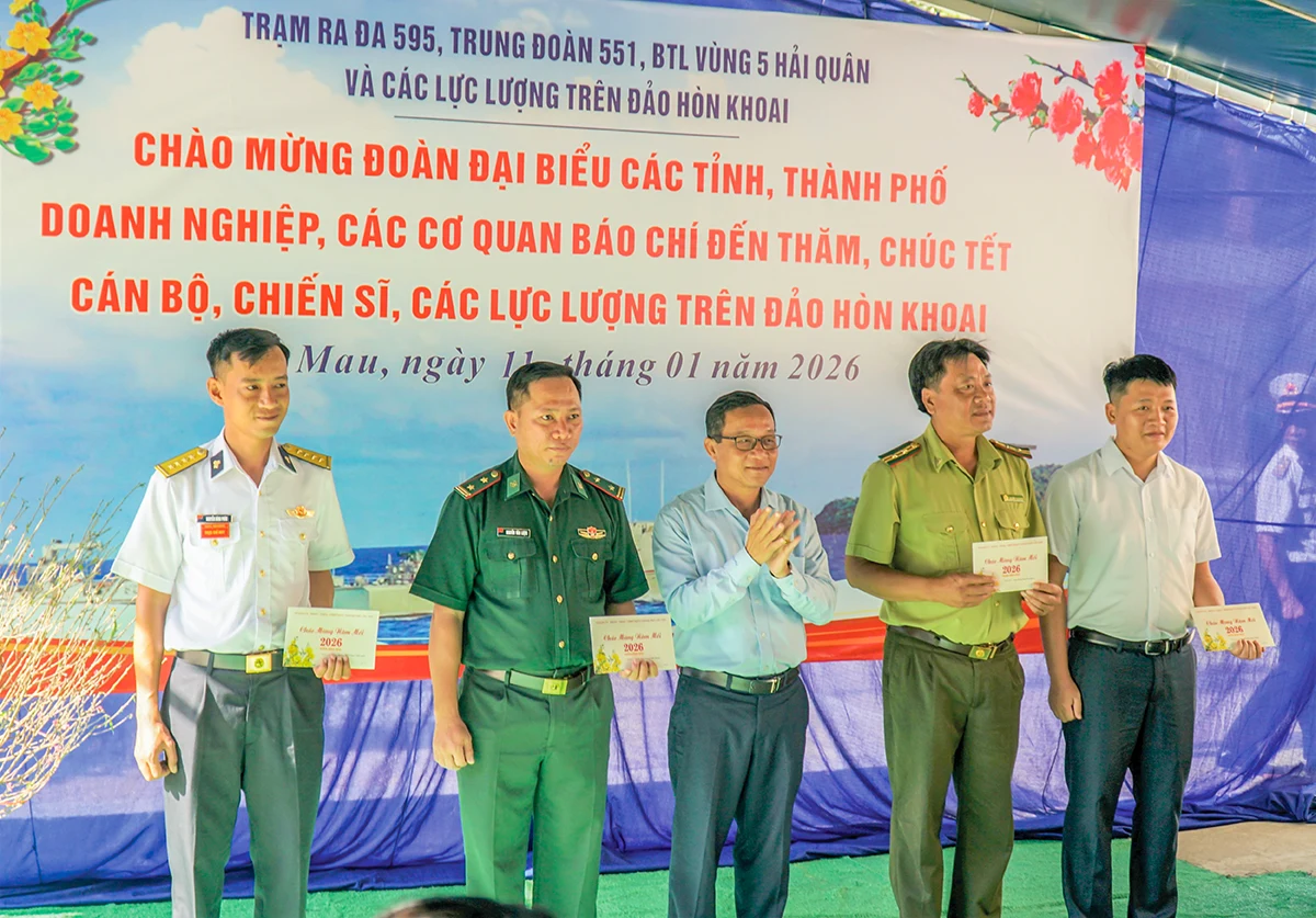 Ông Lý Rotha, Thành ủy viên, Phó Chủ tịch HĐND TP Cần Thơ, tặng quà và chúc Tết các đơn vị trên đảo Hòn Khoai.