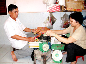 Chú Huỳnh Ngọc Tuyền phụ vợ bán tạp hóa tại nhà. Ảnh: K.C |