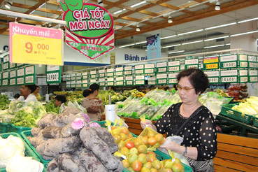 .và các loại rau củ quả khác sẽ luân phiên giảm giá từ 10 - 20%; chương trình “Gia dụng xanh” giảm giá ngay từ 30 - 50% cho các sản phẩm đồ điện gia dụng tiết kiệm điện như: nồi cơm điện, lò nướng thủy tinh, bếp từ, bếp hồng ngoại, bình đun siêu tốc, máy ép trái cây, quạt máy,