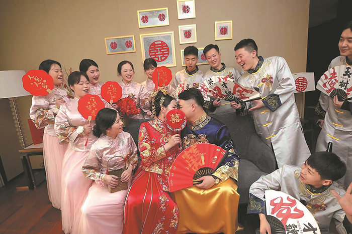 Các phù dâu và phù rể chuyên nghiệp trong một đám cưới ở tỉnh Chiết Giang.