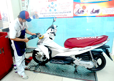 Phủ nano xe máy tại Cửa hàng Honda Hồng Đức, quận Ninh Kiều.