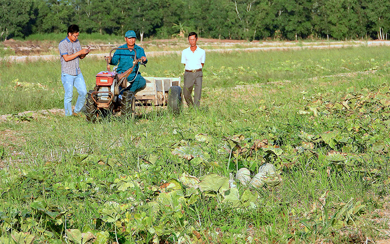 Cùng vụ màu như ông Phưởng nhưng ông Cao Chiến Thi, Chi hội trưởng Chi hội Nông dân ấp Minh Hà A chỉ khai thác được khoảng 3 ha trong tổng số 4,2 ha đất ruộng của gia đình. Ông Thi trồng dưa hấu và loại bí khác, thu về hơn 11 tấn. Với giá bán 6.000 đồng/kg, sau khi trừ hết chi phí ông Thi còn lời khoảng 40 triệu đồng. Ông chia sẻ kinh nghiệm: “Thay vì trồng lúa vụ 3 dễ bị rủi ro vì thiếu nước tưới trong mùa hạn, tôi chuyển sang vụ màu chỉ 60 ngày là thu hoạch, hiệu quả tính ra cao hơn một vụ trồng lúa”.