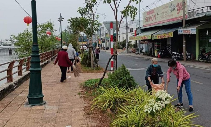 Hội LHPN phường Thới Bình phối hợp vệ sinh môi trường, làm đẹp cảnh quan đô thị trên địa bàn. Ảnh: CTV