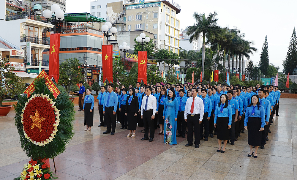 Đoàn đại biểu dự Đại hội Công đoàn TP Cần Thơ nhiệm kỳ 2025-2030 thành kính dâng hoa tưởng nhớ công ơn Chủ tịch Hồ Chí Minh.