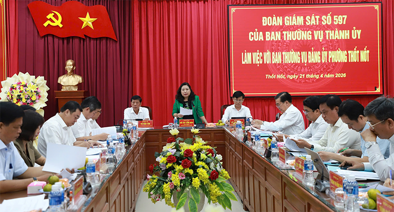 Đoàn Giám sát số 597 của Ban Thường vụ Thành ủy Cần Thơ làm việc với Ban Thường vụ Đảng ủy phường Thốt Nốt và phường Trung Nhứt