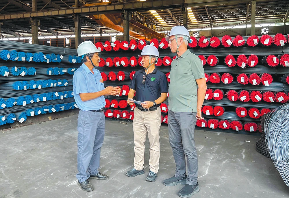 Các chuyên gia của Chương trình VAS tham quan thực tế và trao đổi với đại diện Công ty TNHH Thép Tây Đô về giải pháp tiết kiệm năng lượng đang được triển khai tại công ty.