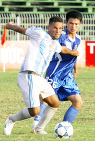 Tiền đạo Marcelo (trái) ghi hai bàn thắng cho Cần Thơ.