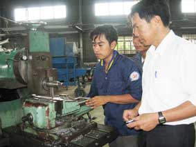 Trường CĐ CĐ&NN Nam bộ luôn quan tâm đầu tư trang thiết bị hiện đại phục vụ cho việc dạy và học. Trong ảnh: Giờ thực hành ở Trường CĐ CĐ&NN Nam bộ. |