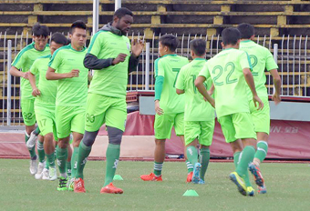 Ngoại binh Nsi (số 90) tập luyện cùng các cầu thủ Cần Thơ. Ảnh: Hoàng Quyên. |