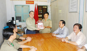 Đồng chí Nguyễn Tấn Quyên thăm bộ đội biên phòng Hòn Khoai - Cà Mau
