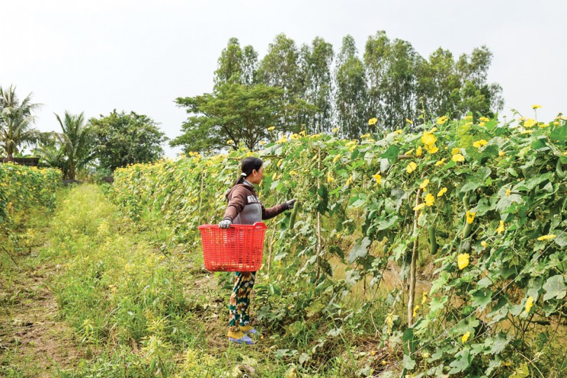 Các tỉnh, thành khu vực ĐBSCL tích cực triển khai các mô hình nuôi trồng đa dạng thích ứng với BĐKH. (Trong ảnh: Mô hình trồng mướp cho hiệu quả tại Cần Thơ).