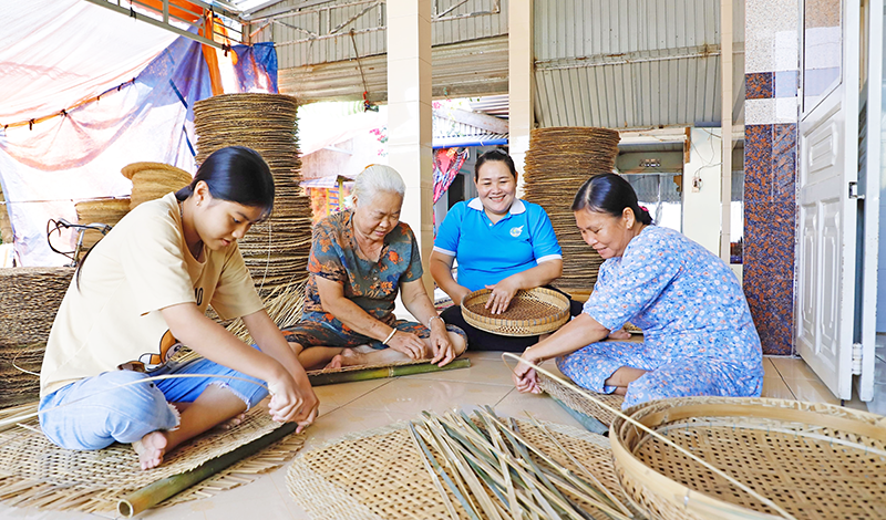 Thành viên THT đan đát khu vực Thới An 1 (phường Thốt Nốt) đan sản phẩm thủ công, góp phần giữ nghề truyền thống và tăng thu nhập.