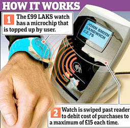 Một loại đồng hồ đeo tay công nghệ cao vừa được trình làng tại Anh có thể giúp người đeo thanh toán tiền mua ly cà phê, tờ báo hay những hàng hóa khác có giá trị nhỏ.